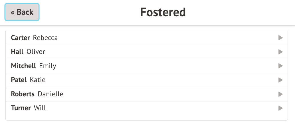 If you click on a particular status, such as 'Fostered' (as shown in the below screenshot), you will be given a list of the students who fall under that category.