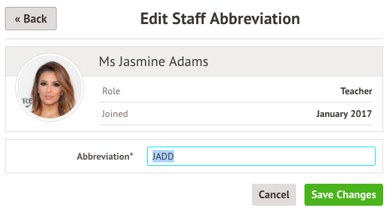 You are able to edit existing 3-character abbreviations (they are automatically generated for each teacher), to set a maximum of 4 characters.