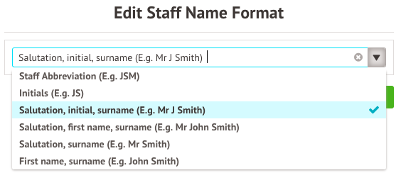 - Click Staff Name Format at the top of the page (in the Student Timetable section)