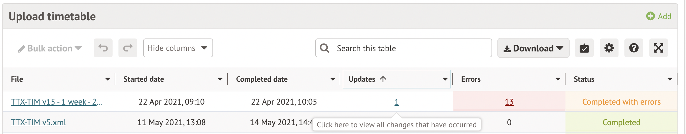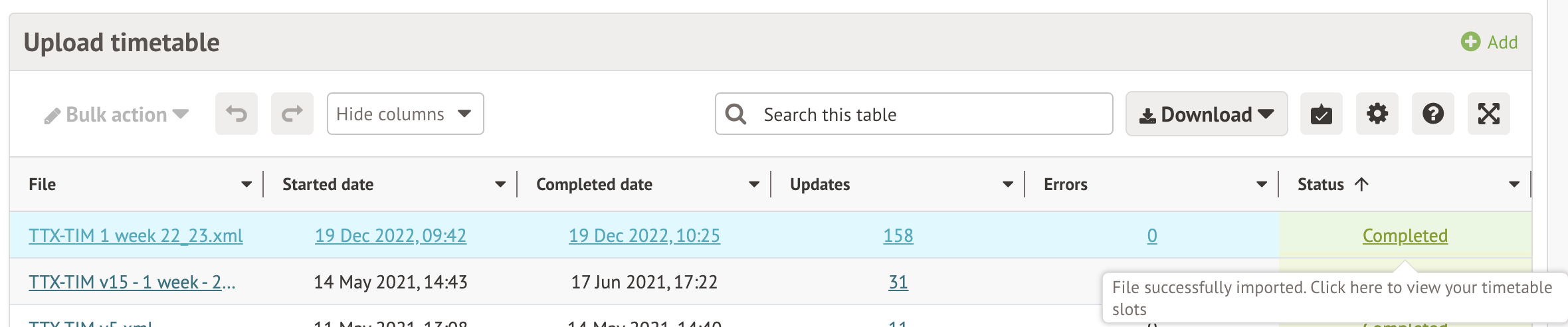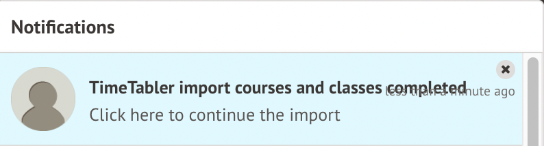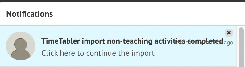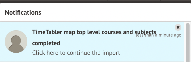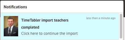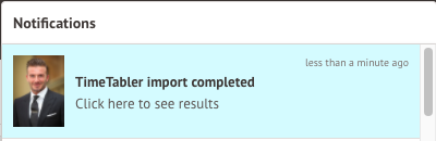 When you click the notification, you can see your completed Timetabler import.