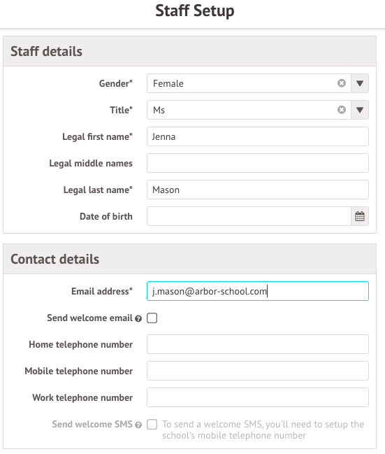 - Import - Where the staff member does not currently exist in Arbor, you can create a new one by selecting Import. We recommend adding new staff members through the usual route of School > All Staff > Add new staff member rather than selecting Import (creates new record) if you have new staff members in TimeTabler file that have not yet been added onto Arbor.