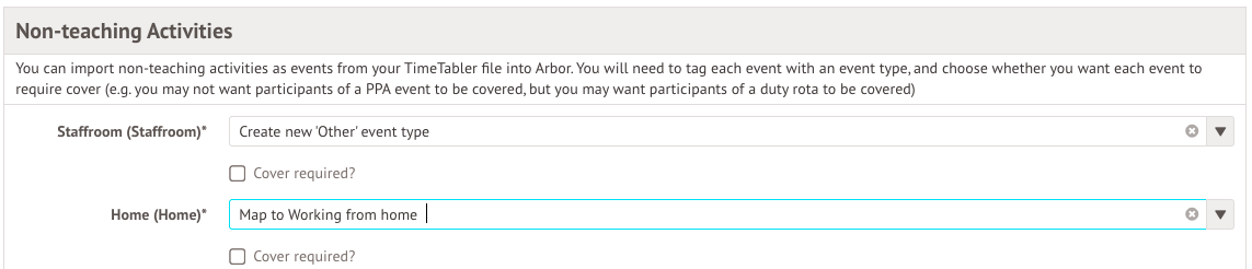 - For each NTA, you can select whether or not the event should flag as requiring cover when a staff member is absent. Don't worry - you can amend this at a later date if needed.