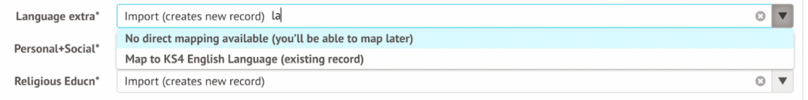 - if there is no direct mapping available (e.g. the subject in TimeTabler is Mathematics, but in Arbor is KS3 Mathematics or KS4 Mathematics), you can select No direct mapping available (you'll be able to map later).