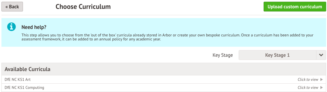 Here you can choose whether to select a curriculum from the list of available curricula (such as rising stars) or to upload a custom curriculum. For instructions on adding a custom curriculum, see this article.