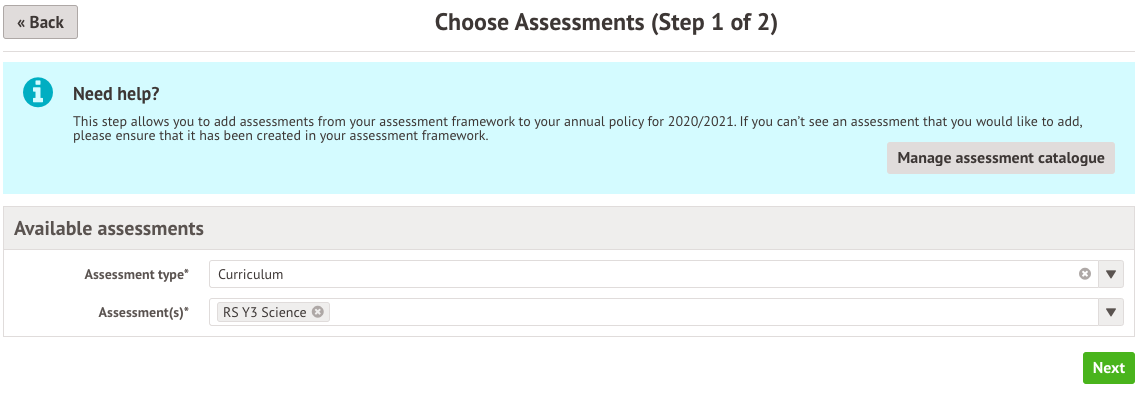 Step 1 - Add the curriculum assessment to your Assessment catalogue