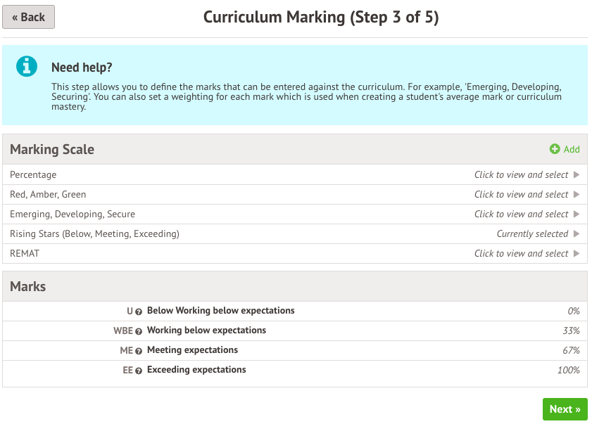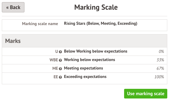 Once you are happy with all your statements, click Next and you will be taken to step 3, where you can choose a marking scale. To change the default marking scale, click on the one you want to use, and click Use marking scale.
