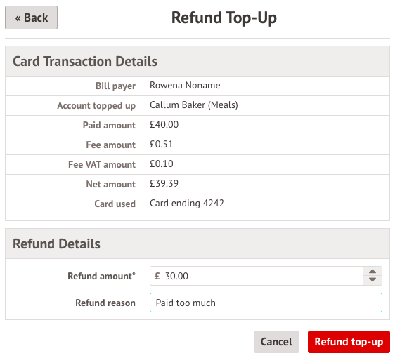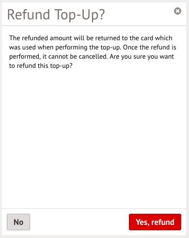 You can then choose how much to refund back to the original payment card, then click Refund top-up.