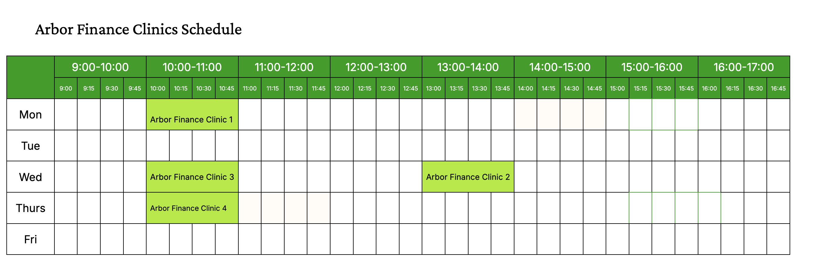 Current Clinic Timetable