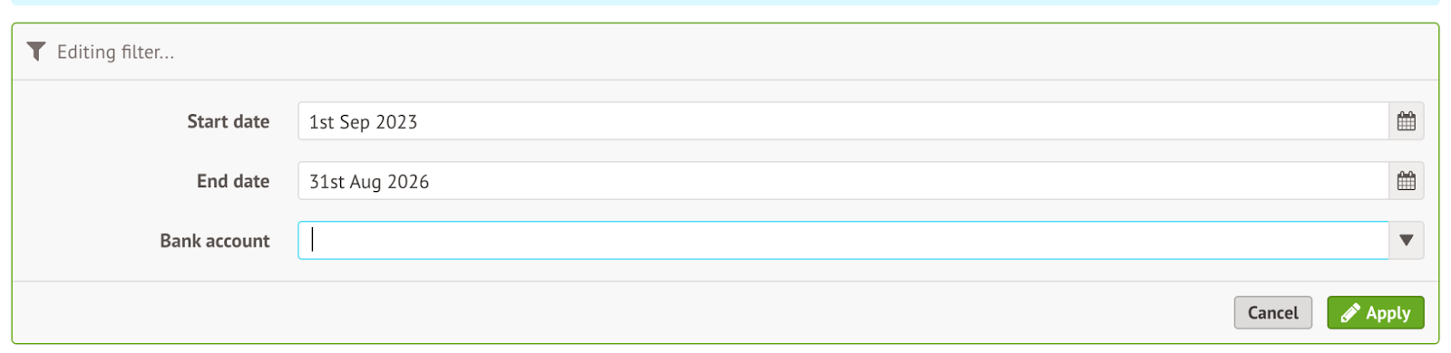 - Set the bank account to be your catering provider's bank account, and ensure that no other bank accounts are selected.