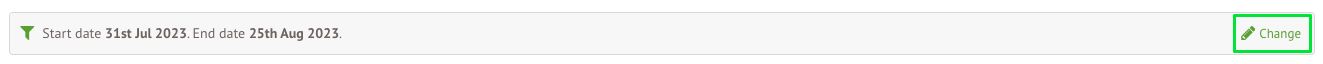 Click the green Change button in the filter bar to edit the dates that you want to report on.