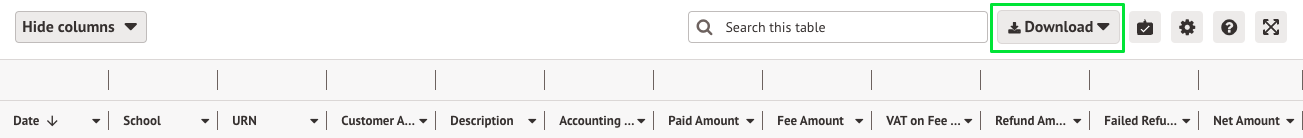 To get to the Settlement Statement go to School > Payments > Reconciliation >Card Payments> Settlement Statement. This report is a highly detailed view of transactions that make up each payout. In the filter at the top of the page, you can select the date range and the report will list every individual transaction within that date range.