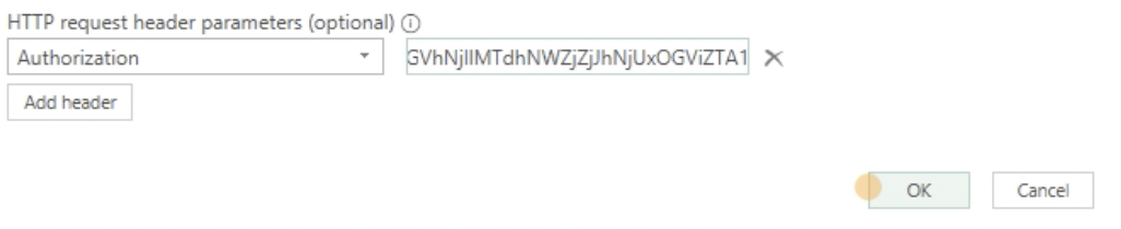 Type Authorization into the HTTP box using the American spelling and paste your authorisation code (including the word Basic) into the box next to it, then click OK.
