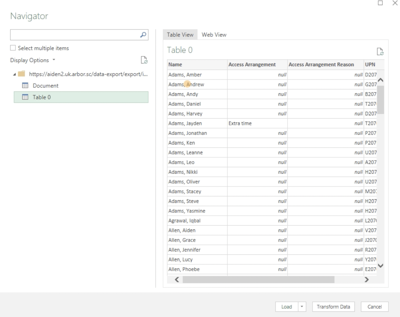 You will then see a new pop-up window showing the data loading. - When the data tables appear on the screen, click Load.