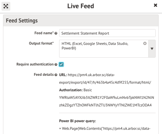 The steps below detail how to create a secure Live Feed to Excel that requires authorisation. For more information on creating and using Live Feeds, see our article here.