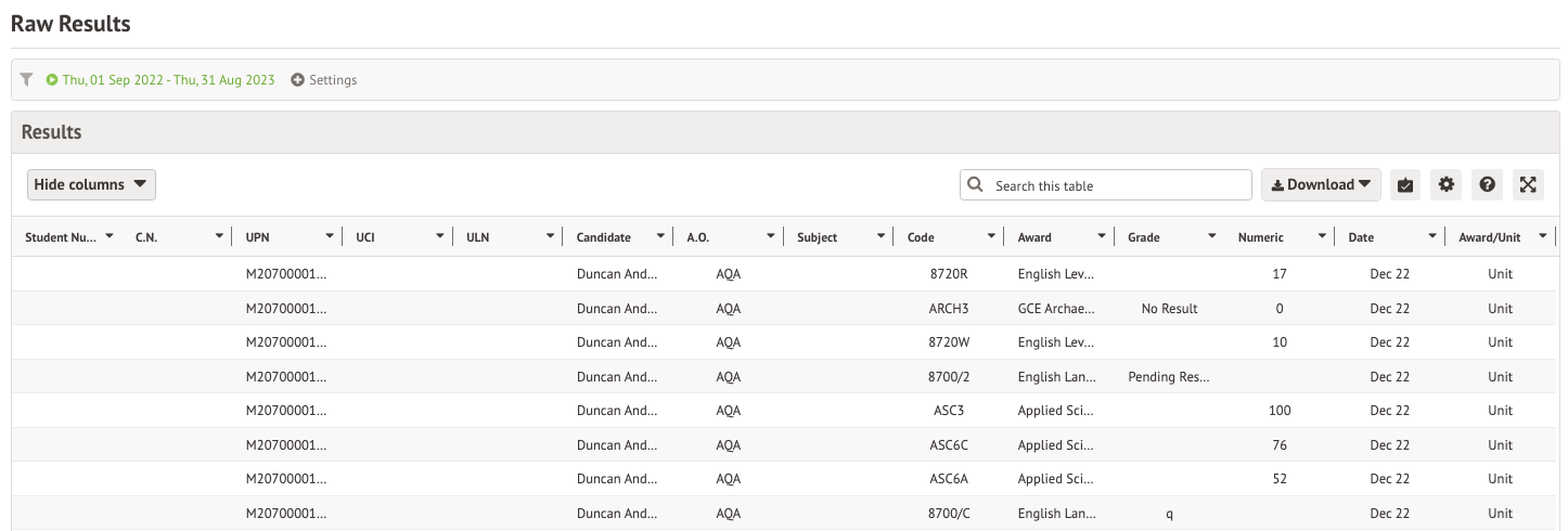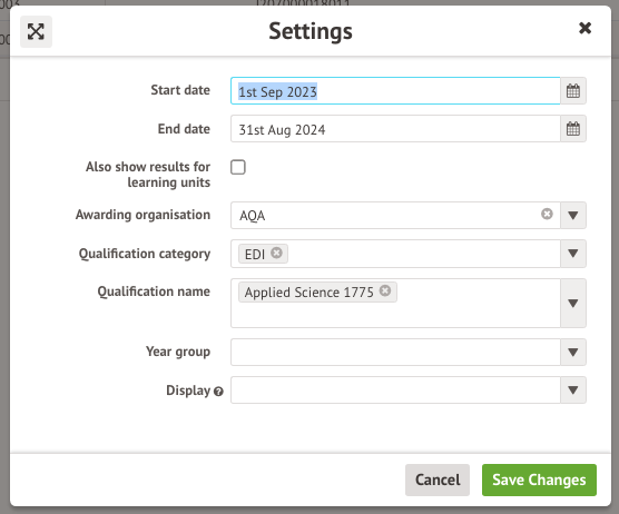 Per Qualification shows your results by their qualifications. You can amend the filter at the top of the page to filter the results here by awarding organisation, category, etc.