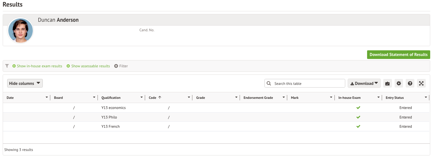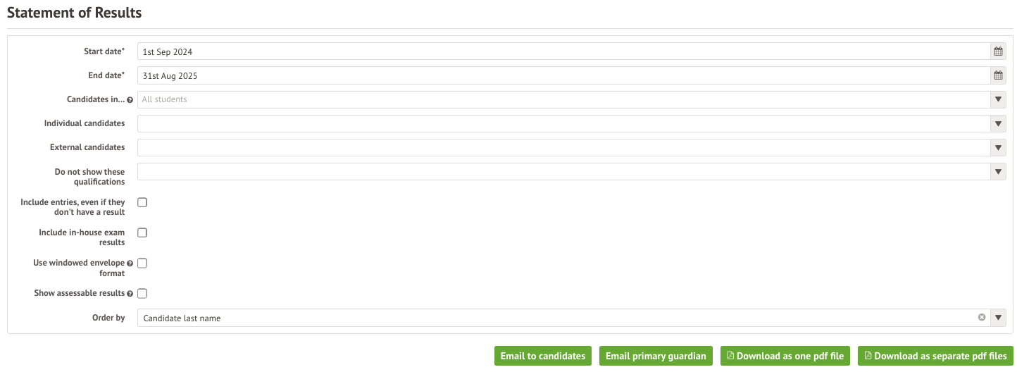 This page is where you get the Statement of Results in Arbor. You can download statements for groups of students or for individual internal and/or external candidates.