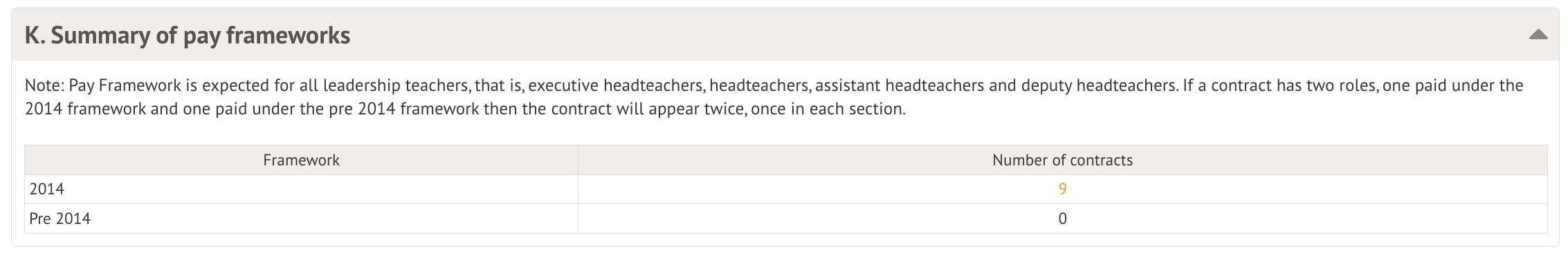 Table K: Summary of pay frameworks