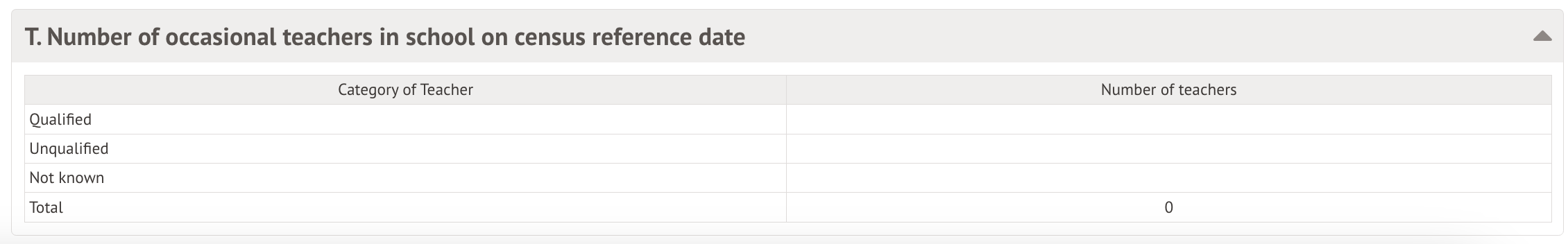 Table T: Number of occasional teachers in school on census reference date