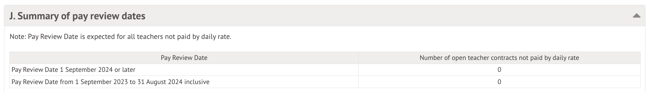 Table J: Summary of pay review dates