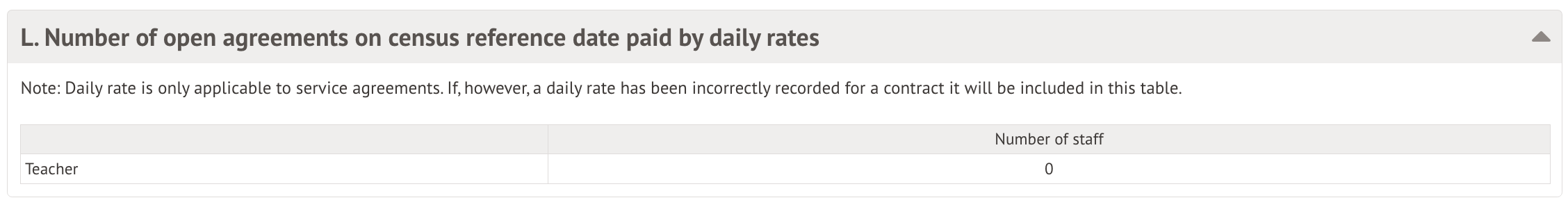 Table L: Number of open agreements on census reference date paid by daily rates