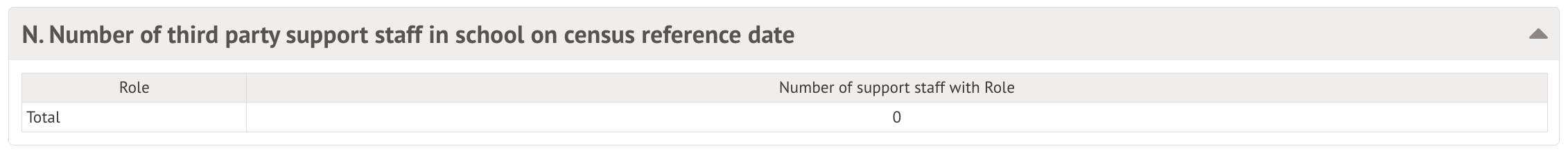 Table N: Number of third-party support staff in school on census reference date