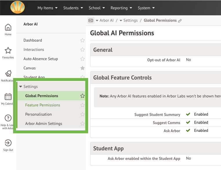 You will need the School: Arbor AI: Administer Arbor AI permission to administer Arbor AI.