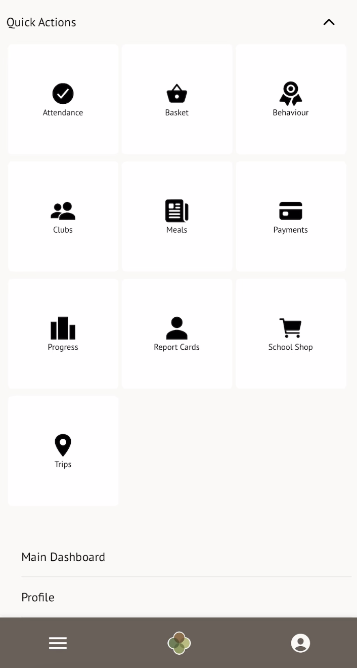 Once you have logged into the Arbor App, tap Quick Actions and tap Clubs, Trips, School Shop, or Payments to browse available payment options. You can also navigate straight to your basket from here if you already have items in it.