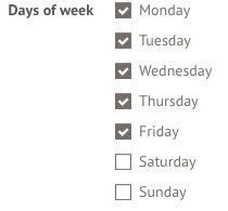- Use the Days of week tick boxes to change the days of the week your choices apply to