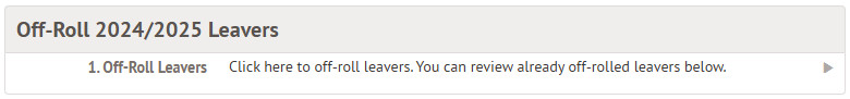 - To off-roll students, click on "1. Off-Roll Leavers".