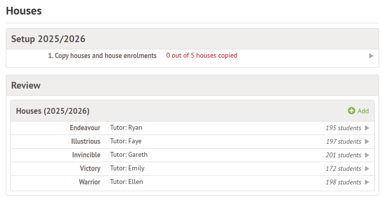 When migrating to Arbor via GroupCall, Houses will be migrated along with student enrolments from SIMS for the next academic year, except for Applicant memberships, which must be added manually after the School Year Setup.