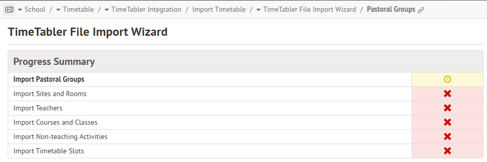 - If still In progress after 30 minutes, try importing again. Tip: Create a new export file in TimeTabler with the same name for re-import.