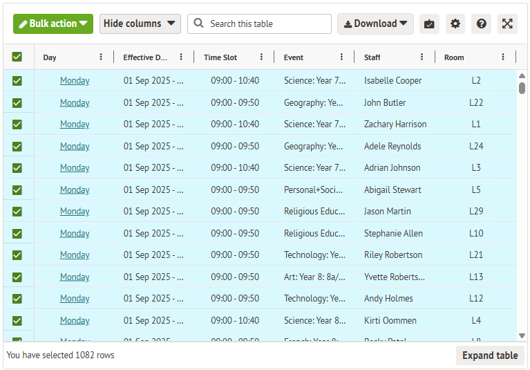 - Spot check your timetable to ensure that the correct classes have been timetabled with the correct staff and rooms at the correct time and day. To amend, add or delete timetable records, follow this guidance.