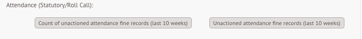 - Count of Unactioned Attendance Fine Records – shows how many unauthorised absence records a student has in the previous 10 good school weeks that are still unactioned (not linked to a fine or still pending).