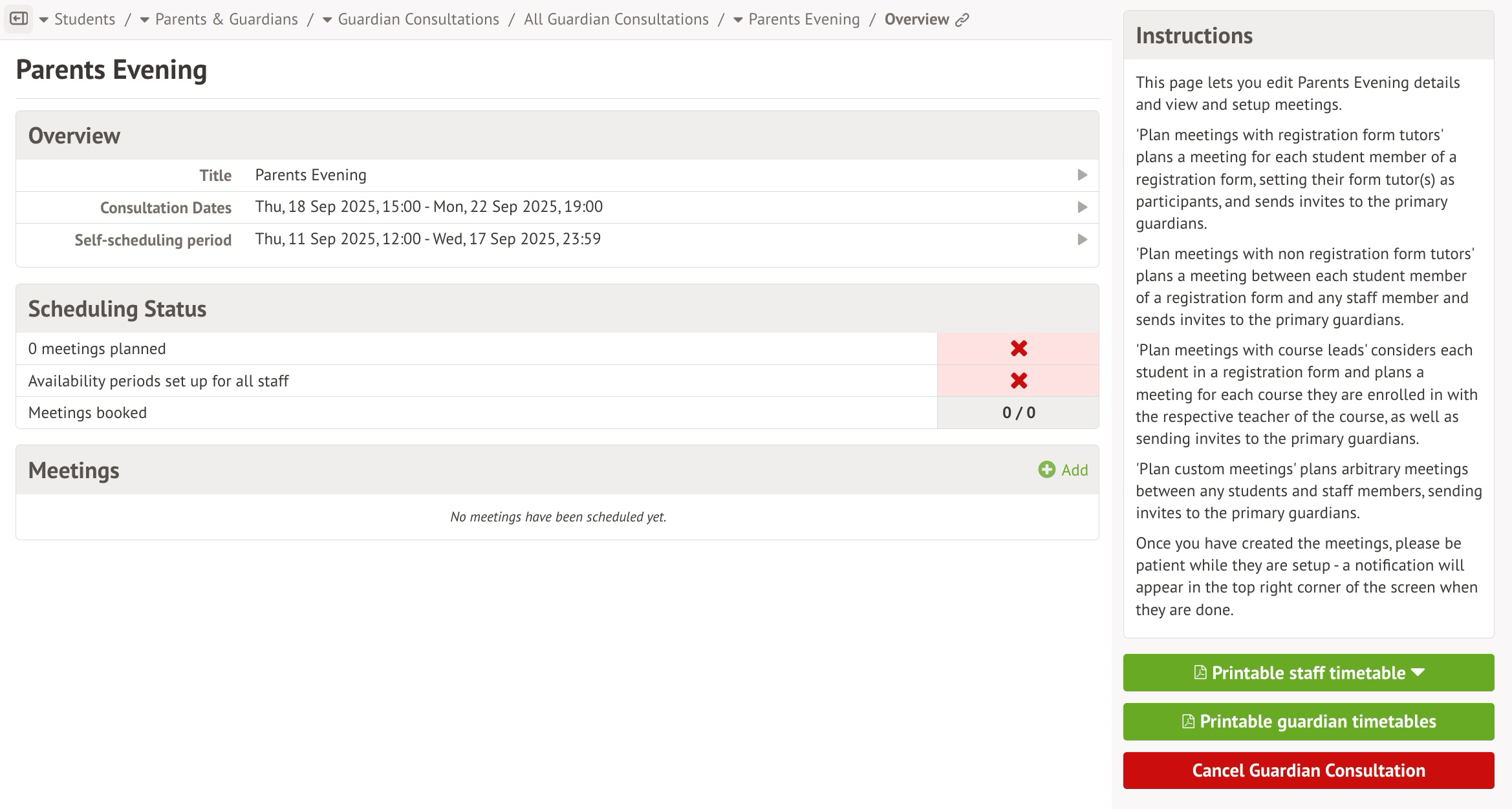 - Meeting Management - Setting up Parents Evenings (Guardian Consultations)