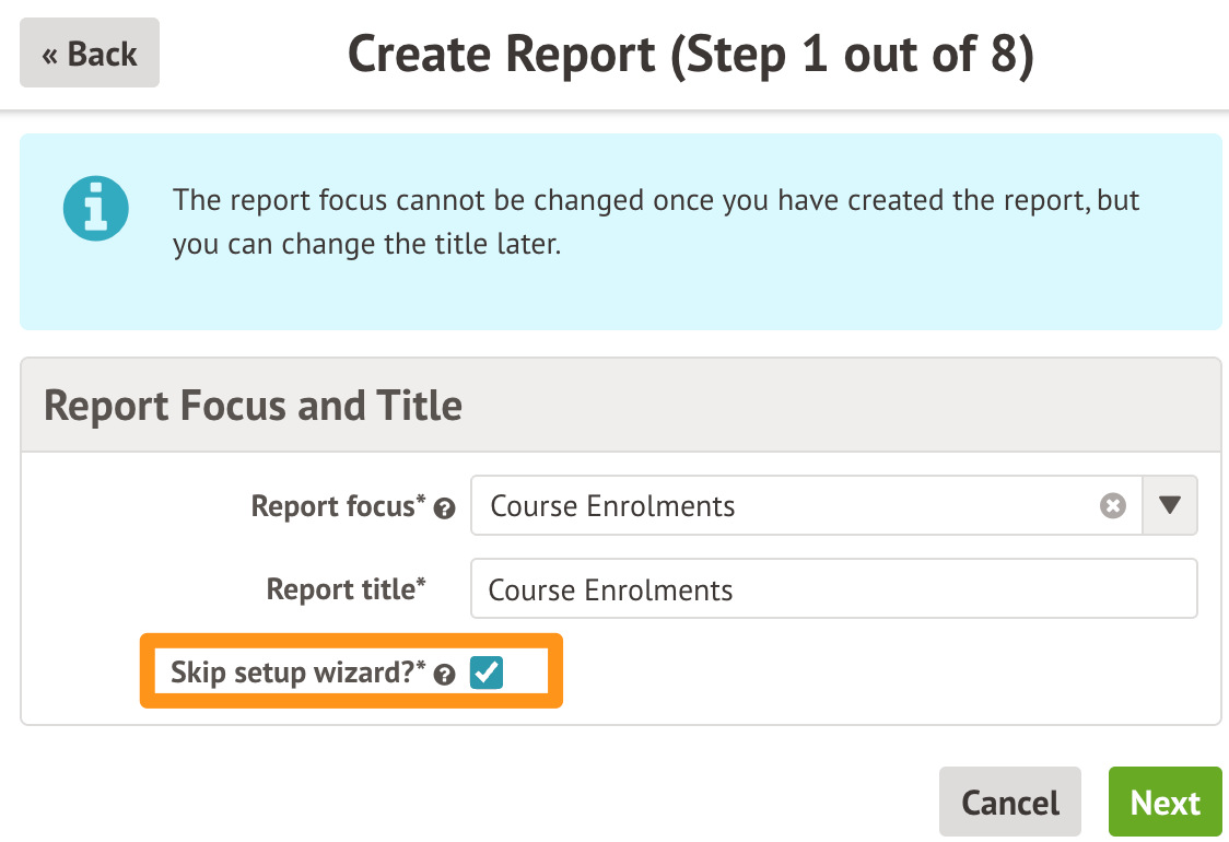 Top Tip: You may find it easier to click 'Skip setup wizard' after choosing your report focus and title to head straight to the main Edit screen.
