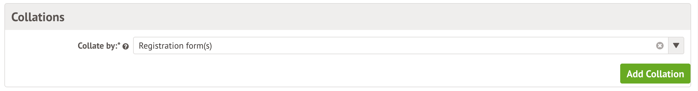 To add a collation, scroll down to Collations and then choose the relevant option from the drop-down menu, for example, Registration form(s).