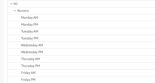 Creating a Nursery Registration Form linked to a Nursery year group allows for the creation of a course with 10 modules (two for each day of the week, AM and PM) and timeslots for each module, rather than creating a single registration course with multiple timetable slots.