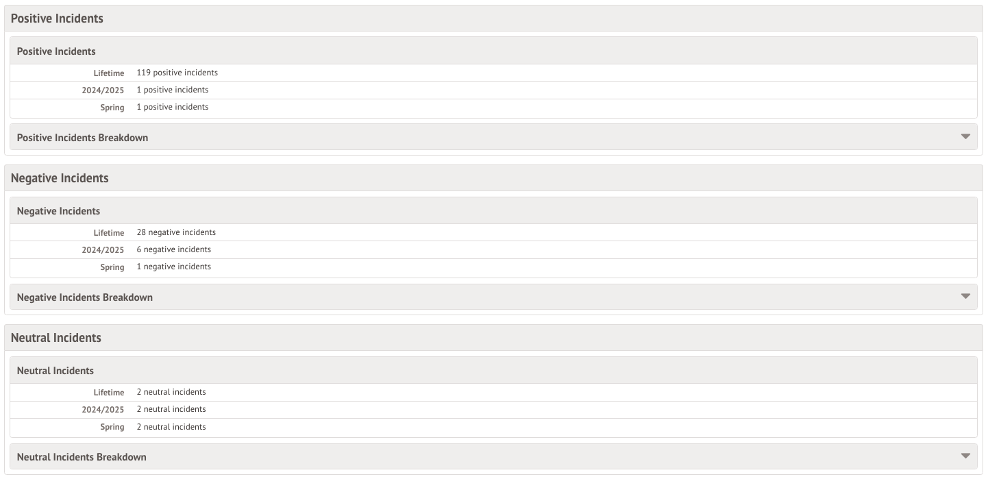 Top Tip: Switching this on will show all past, present and future data in this area. This cannot be changed. For example, switching on behaviour will show all past incidents, points etc.