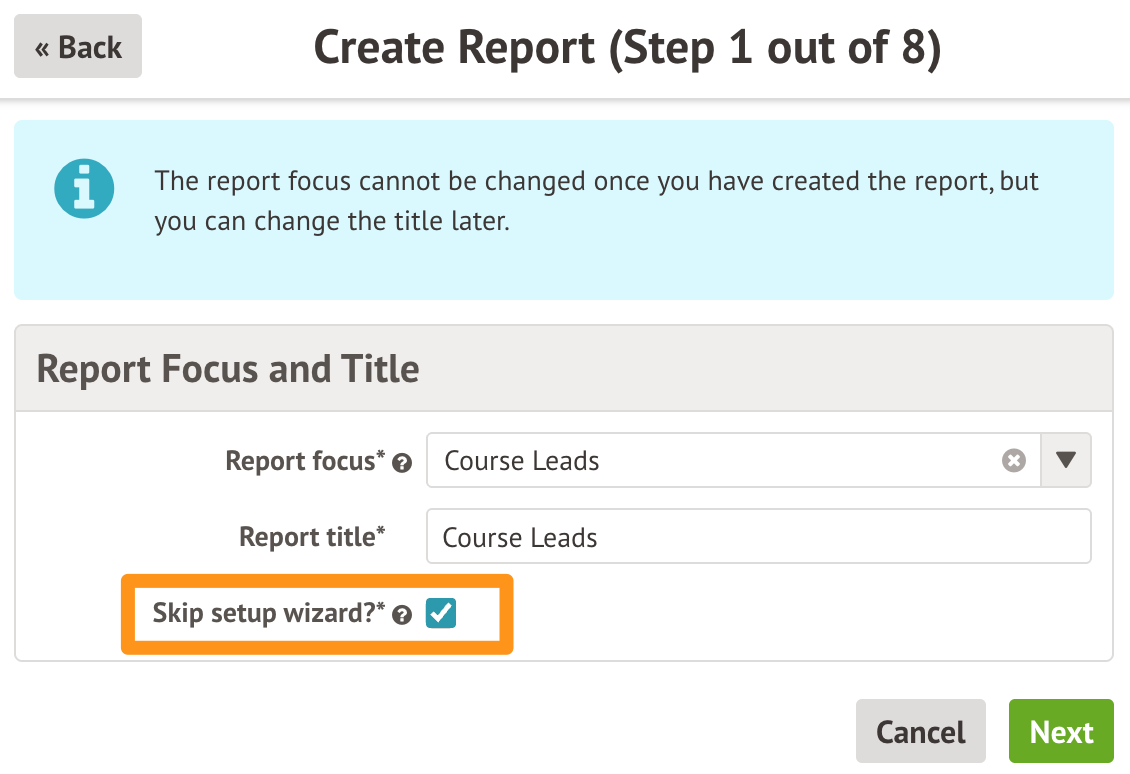 Top Tip: You may find it easier to click 'Skip setup wizard' after choosing your report focus and title to head straight to the main Edit screen.