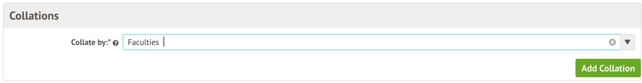 To add a collation, scroll down to Collations and then choose the relevant option from the drop-down menu, for example, Faculties.