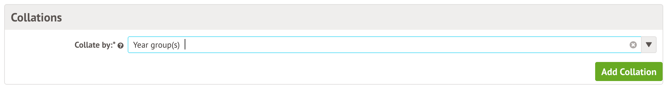 To add a collation, scroll down to Collations and then choose the relevant option from the drop-down menu, for example, Year Group(s).