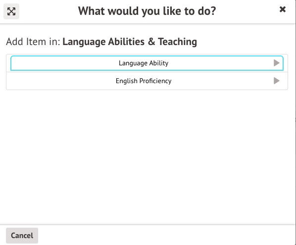 To make edits to an existing language or proficiency record, click on the item in the Language abilities list, make your edit on the slide-over and click the green button to confirm.