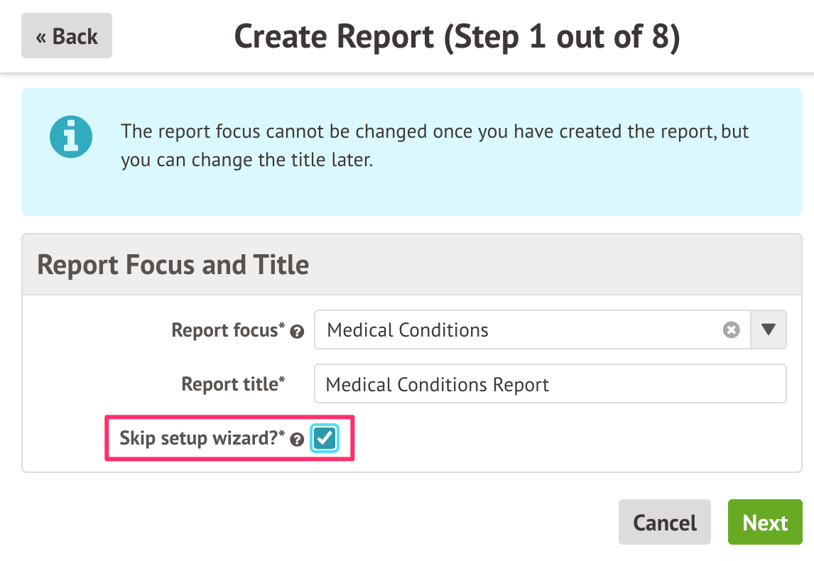 Top Tip: You may find it easier to click 'Skip setup wizard' after choosing your report focus and title to head straight to the main Edit screen.