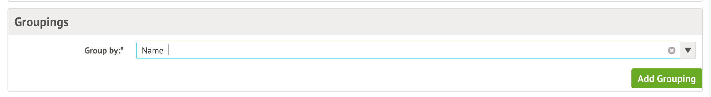 To add a grouping, scroll down to Groupings. From the drop-down, select the grouping that you are interested in, for example, Name. Then click on the green Add grouping button.