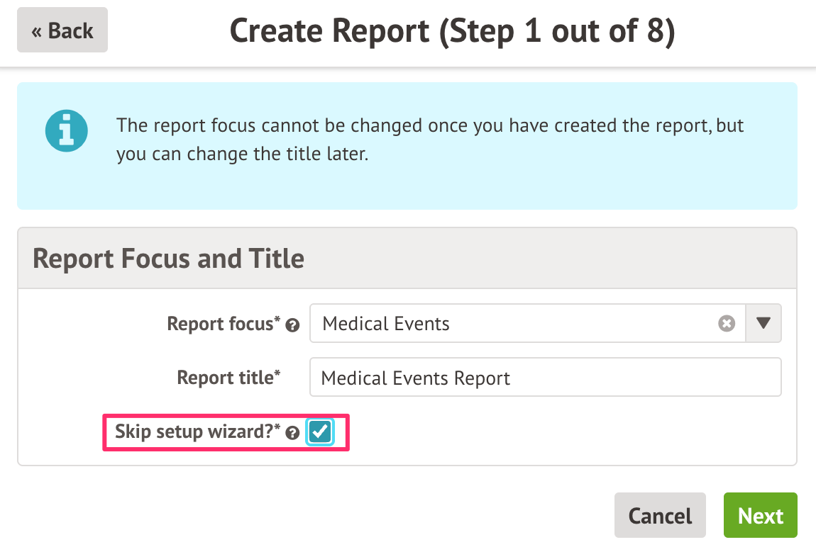 Top Tip: You may find it easier to click 'Skip setup wizard' after choosing your report focus and title to head straight to the main Edit screen.