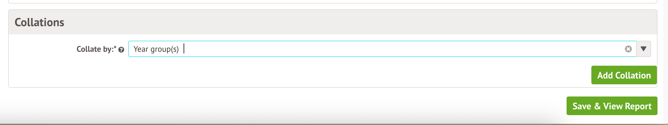 To add a collation, scroll down to Collations and then choose the relevant option from the drop-down menu, for example, Year group(s).