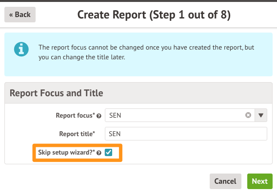 Top Tip: You may find it easier to click 'Skip setup wizard' after choosing your report focus and title to head straight to the main Edit screen.