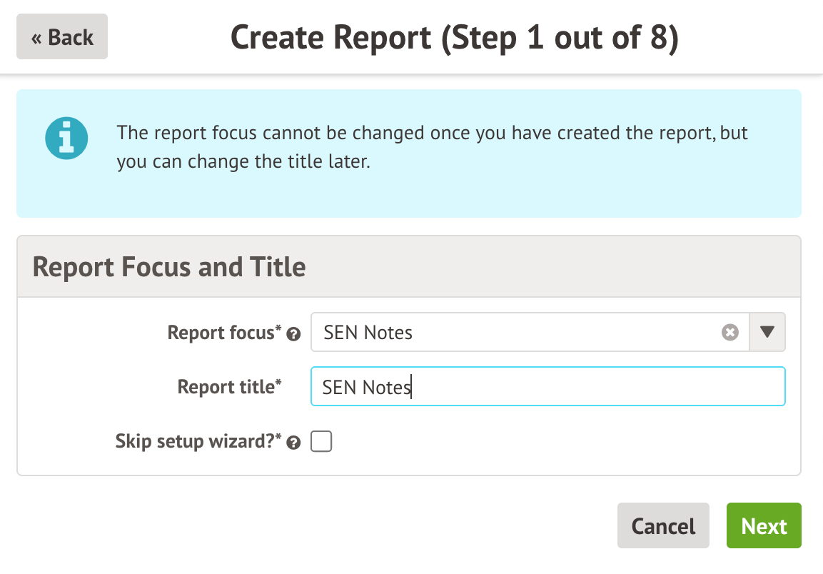 Top Tip: You may find it easier to click 'Skip setup wizard' after choosing your report focus and title to head straight to the main Edit screen.