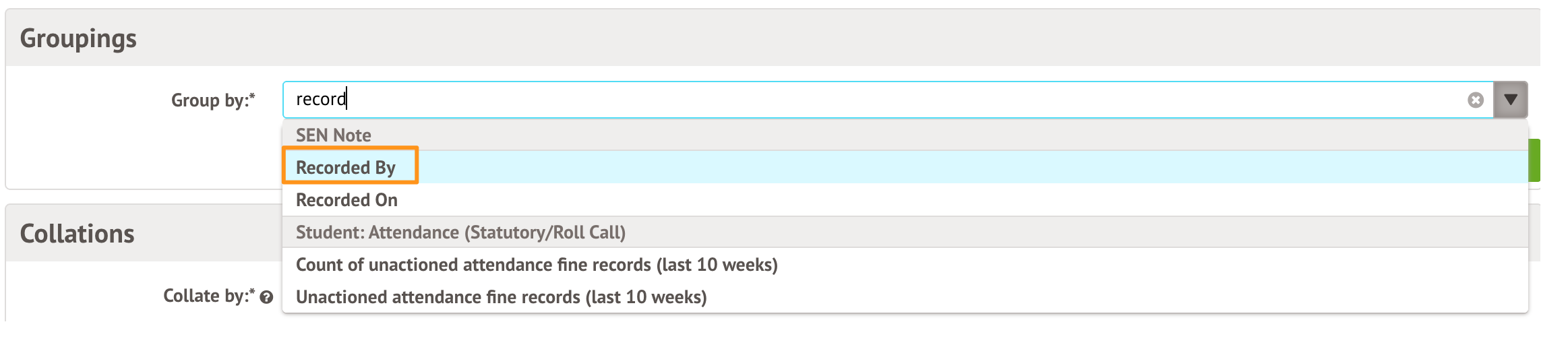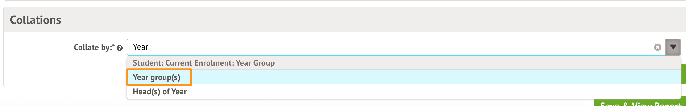 To add a collation, scroll down to Collations and then choose the relevant option from the drop-down menu, for example, Year Group(s).