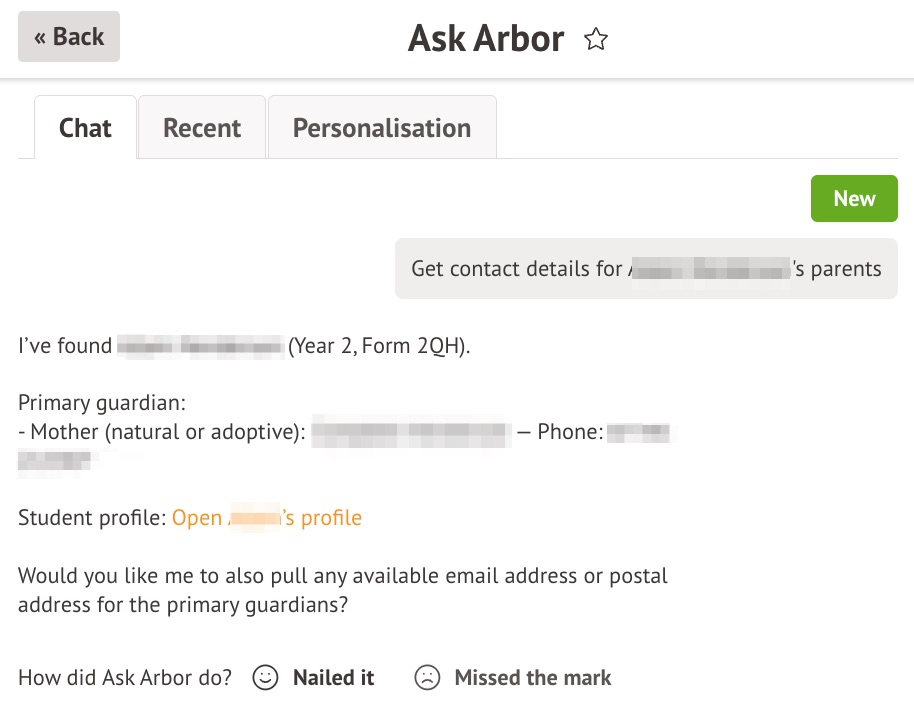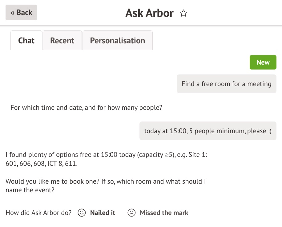 - Try follow-up questions — Ask Arbor remembers your context within a single chat.